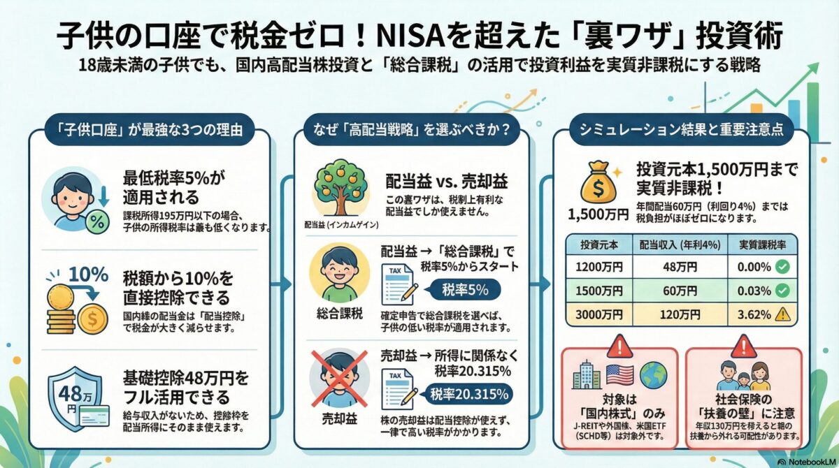 子供の証券口座運用を考える子供の資産運用はNISAに非ず!16歳未満の特権「国内高配当×総合課税」で税金をゼロにする裏ワザ