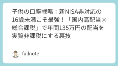 子供の口座戦略:新NISA非対応の16歳未満こそ最強!「国内高配当×総合課税」で年間135万円の配当を実質非課税にする裏技