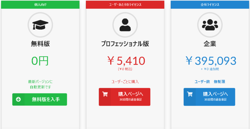 無料版の人は無料版を選択するとダウンロードページに遷移するのそこからダウンロード出来ます。